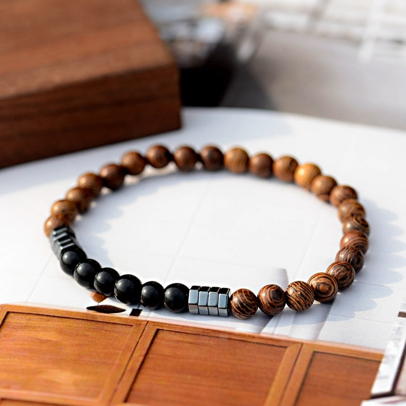 This bracelet features natural wood and beads, providing a unique and earthy look. The combination of materials promotes a sense of grounding and mindfulness, making it a perfect accessory for a yoga practice. Bring a touch of nature to your outfit with this 6MM bracelet.
