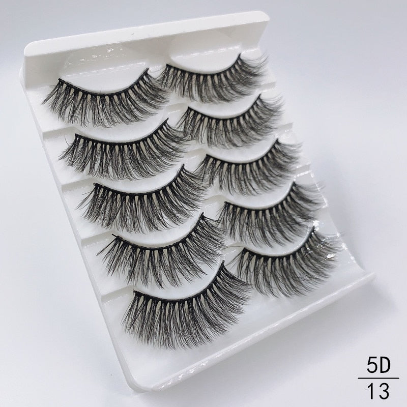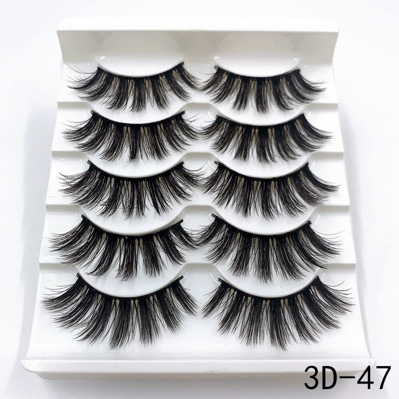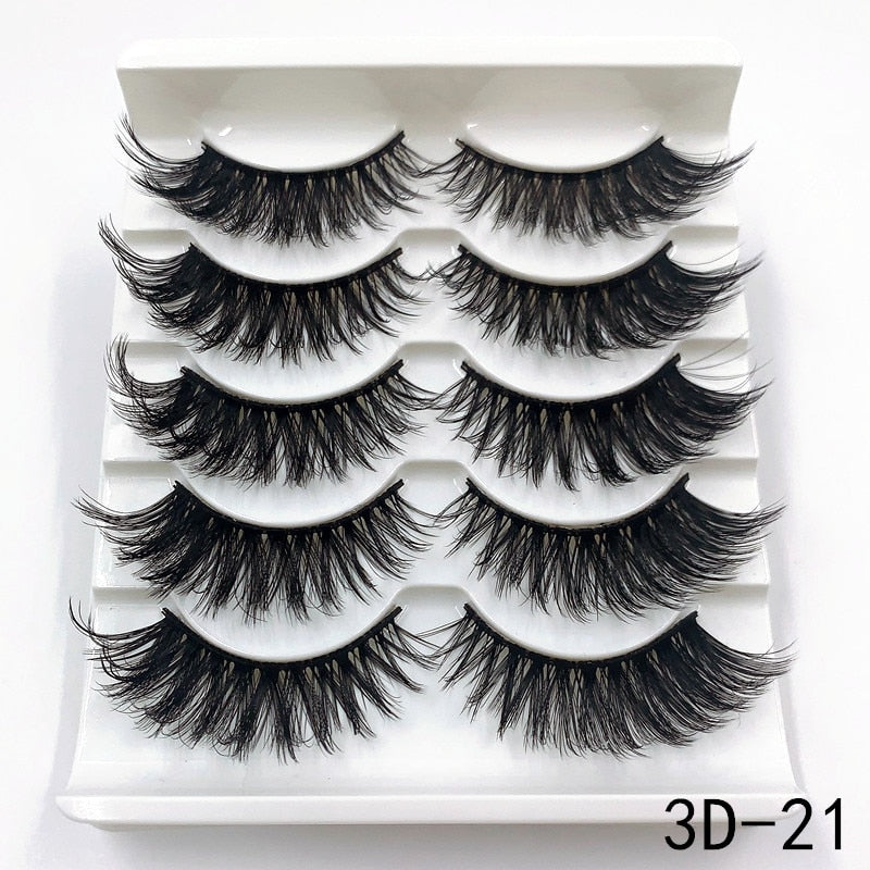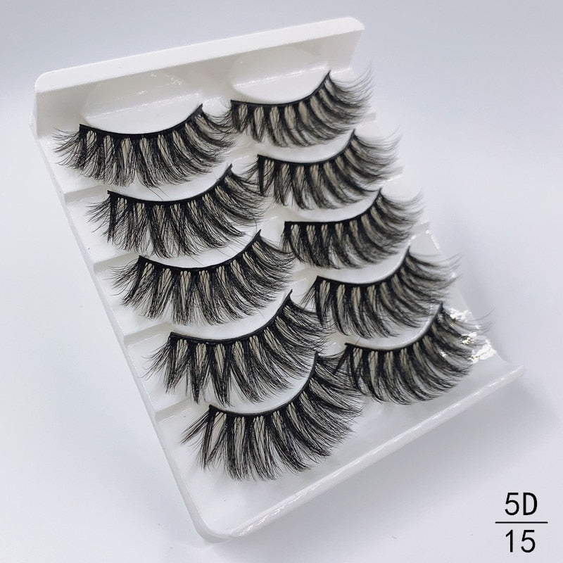 5 Pairs Faux Mink Eyelashes Fluffy Wispy Long Dramatic False Lashes Thick Volume Fake Eyelashes Natural Soft Extension Eyelash