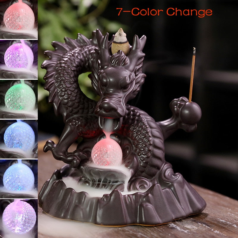 7-Color Change Incense Burner Handmade Ceramic Dragon Backflow Incense Burner Creative Smoke Waterfall Incense Holder Censer