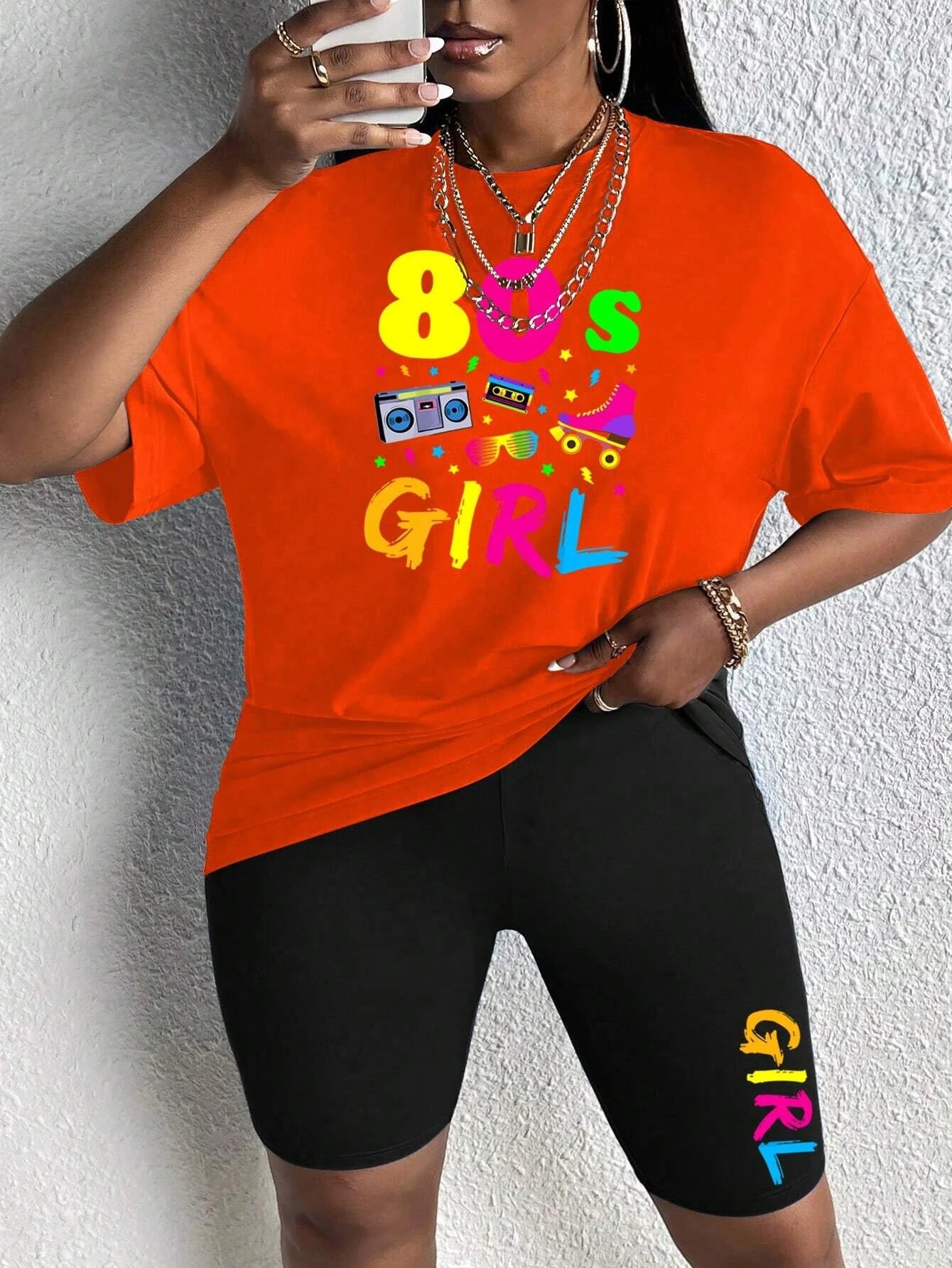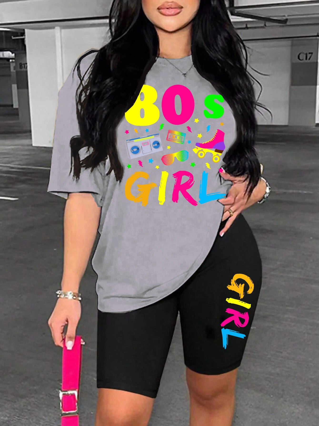 80 S Girl Colorful Printing T Shirts Two Piece Set Fashion Casual Short Sets Comfortable Breathable Shirt Shorts