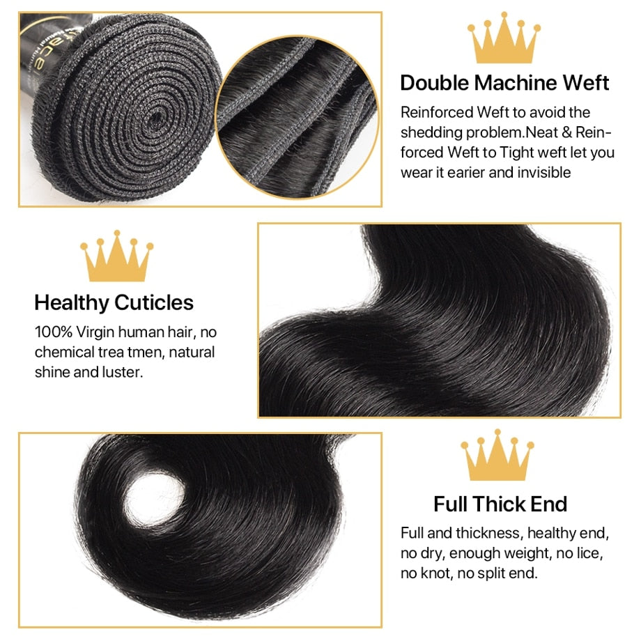 Our Body Wave bundles human hair is perfect for women looking for a natural look. Made with premium Brazilian Natural Hair Weave 4 Remy Human hair bundles, it is sure to provide lasting style and a luxurious feel. Ideal for hair extensions and other styling, this human hair product is soft and tangle-free.