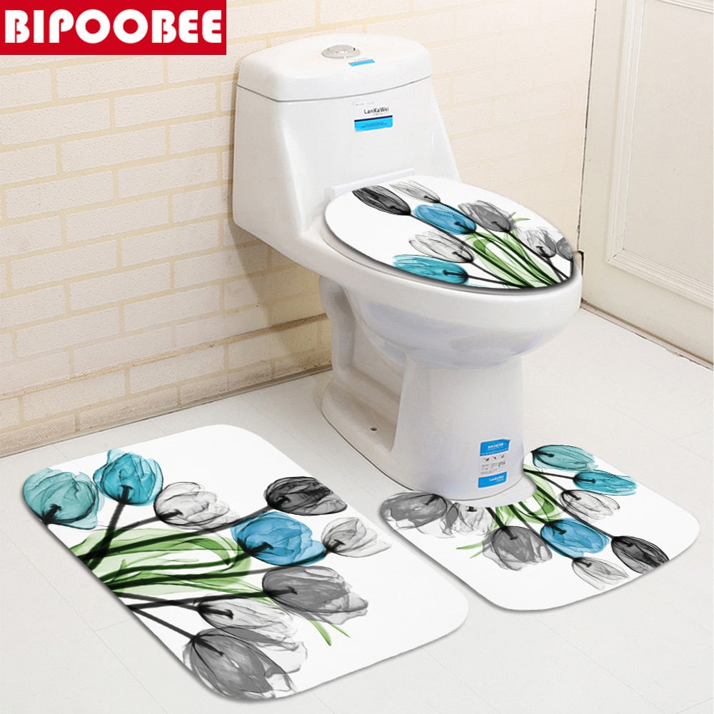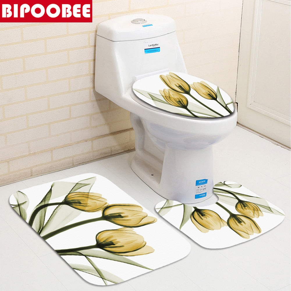 Liven up your bathroom with Colorful Tulip Lotus Flowers Trees Shower Curtain Sets Non-Slip Rugs Toilet Lid Cover and Bath Mat. This waterproof bathroom curtain set contains a toilet lid cover and a non-slip bath mat, creating a durable and comfortable experience for your bathroom. With vibrant colors and a long-lasting design, this set is perfect for any bathroom.