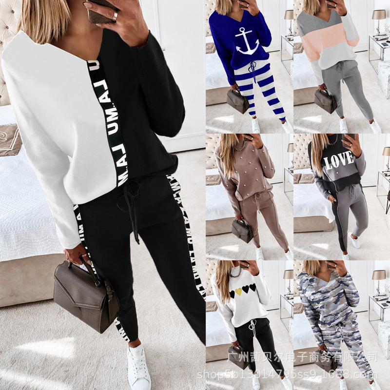 Brand Name: Elevate your style with our Contrast Piping Top & Drawstring Pants Set. This 2-piece set offers both comfort and fashion with trendy contrasting details. Perfect for the colder seasons, this set includes a cozy sweatshirt and matching sweatpants, making it a must-have for your autumn and winter wardrobe.