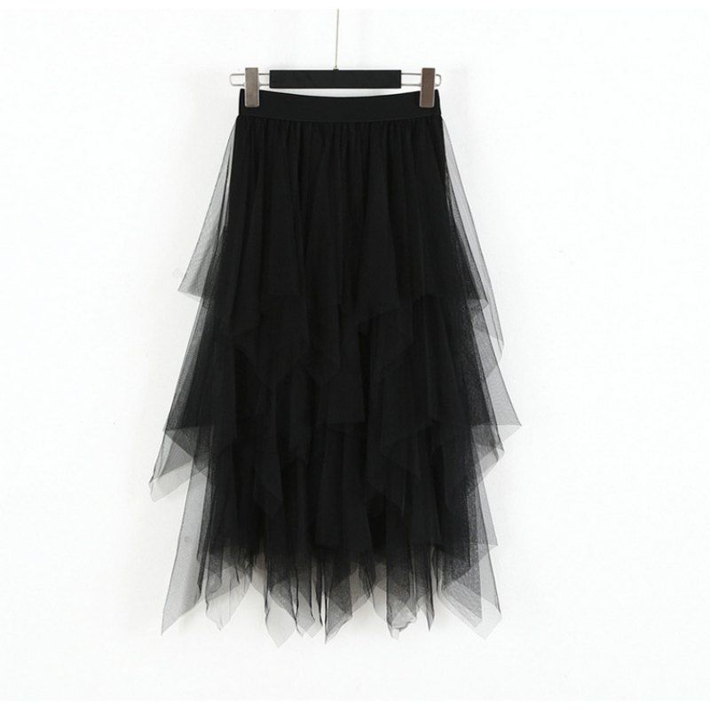 Party Skirt Elastic High Waist Long Tulle Skirt Women Irregular Hem Mesh Tutu Skirt