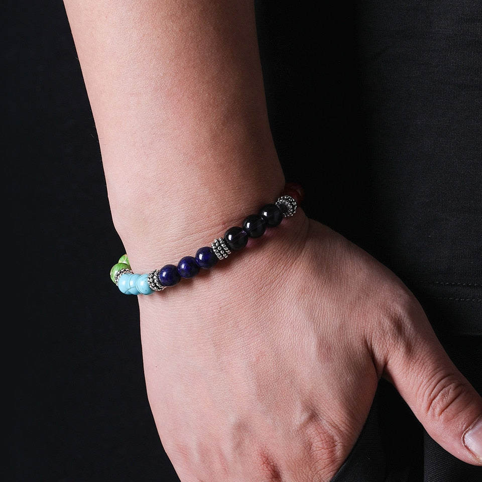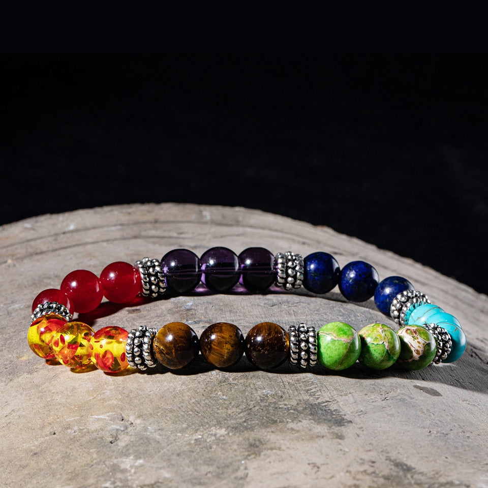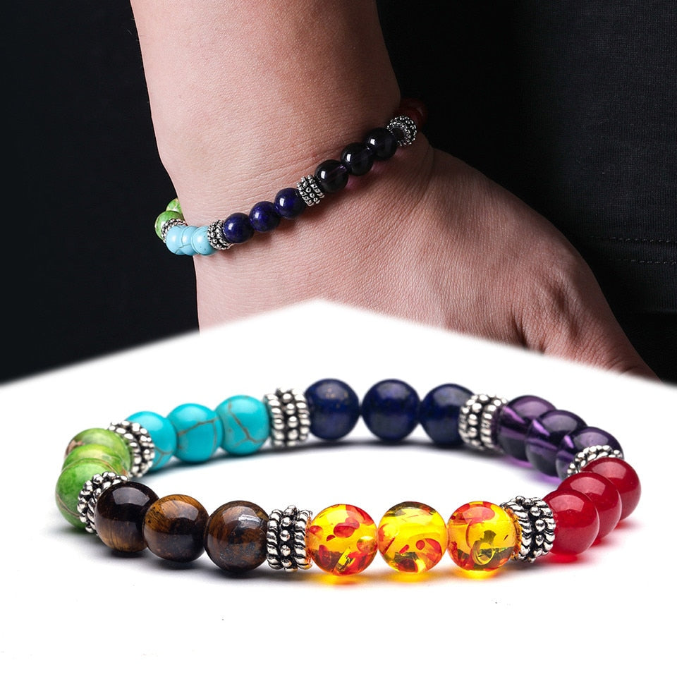 These Natural Stone Beads 7 Chakra Bracelets use Tiger eyes stones to provide an elegant and natural look. Their natural wood construction makes them both stylish and reliable. Perfect for accessorizing your look.
