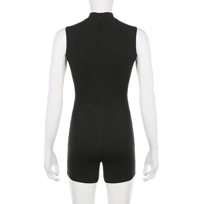 This sleeveless playsuit combines comfort and style with its breathable fabric and a sleek invisible zipper for easy wear. Designed for versatility, it offers a flattering fit that suits casual outings or sporty looks, making it an essential all-match wardrobe piece for warm weather.