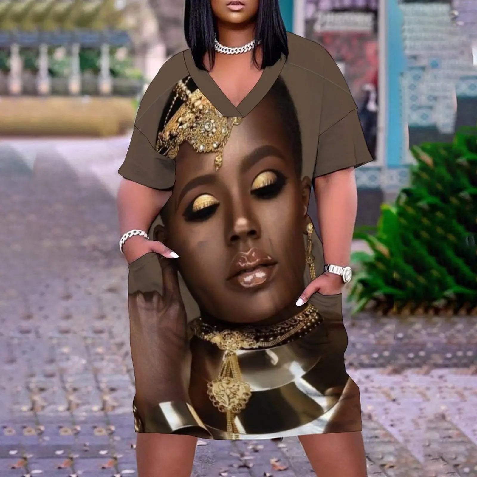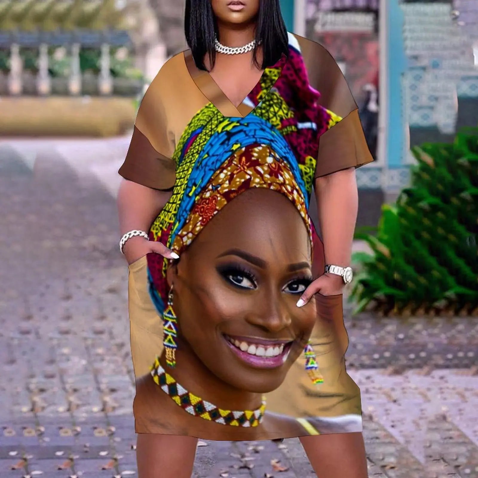 Fashion Short Sleeve Evening Party Dress Boho Beach Outfit with pockets