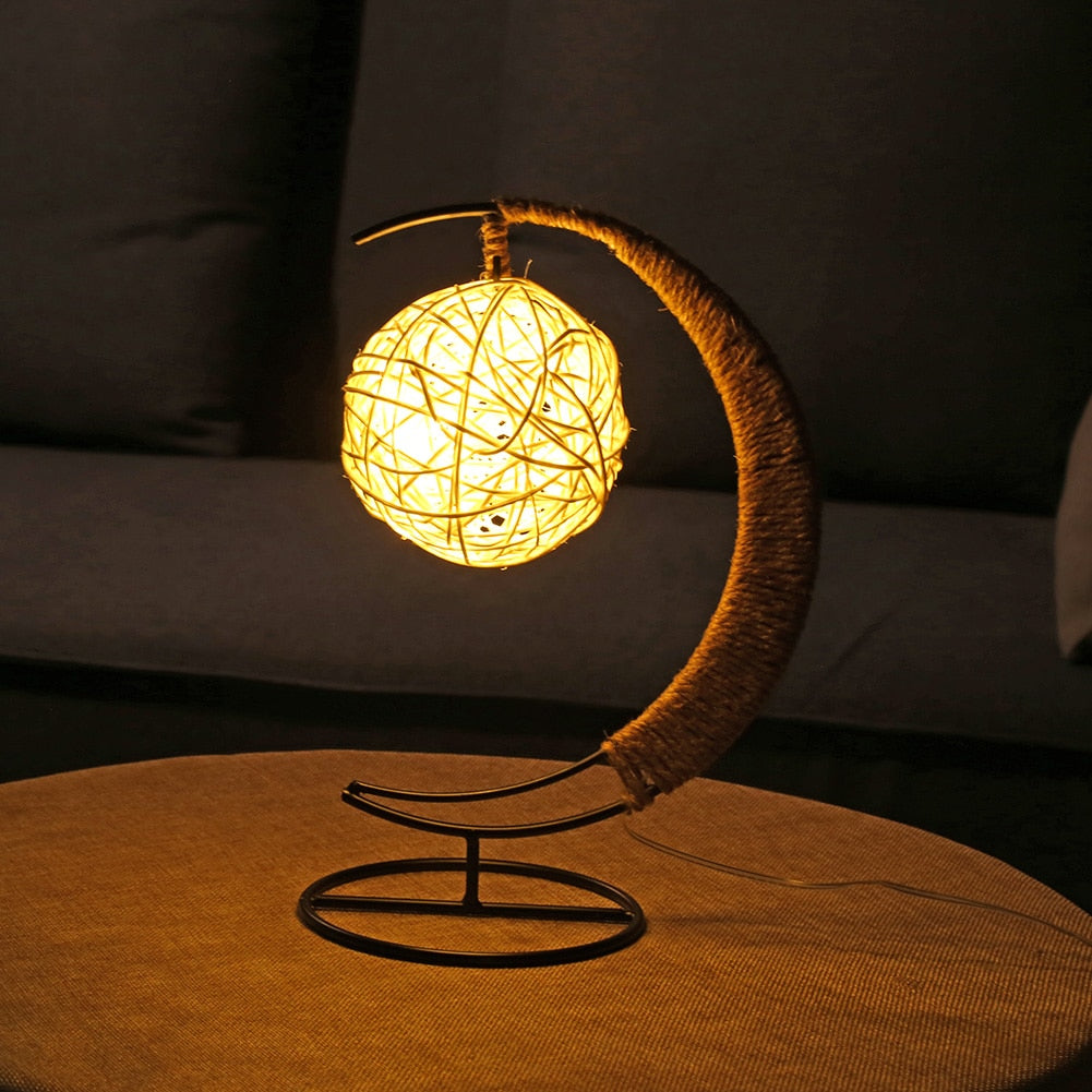 USB LED Moon Sepak Takraw Lamp Line Rattan Handmade Hemp Rope Wrought Iron Night Light Home Decoration Sleeping Lantern Light