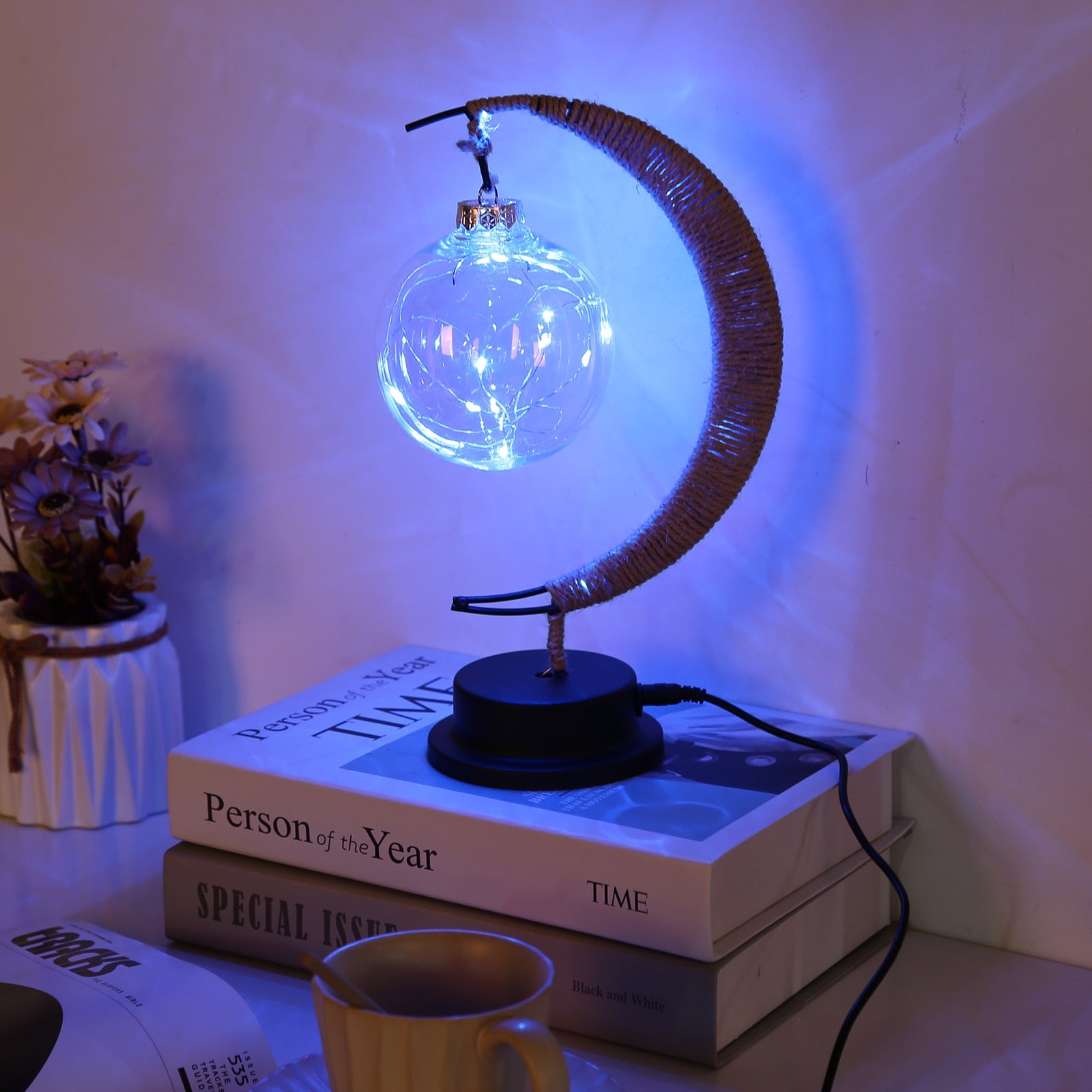 This USB LED Moon Sepak Takraw Lamp Line Rattan Handmade Hemp Rope Wrought Iron Night Light Home Decoration Sleeping Lantern Light is designed to provide you with a soft, warm, and inviting light that is perfect for creating a cozy atmosphere in any home. The LED lamp nightlight is a great and stylish way to light up a space without being too glaring or bright. Its rattan and wrought iron construction also adds a unique charm to your home décor.