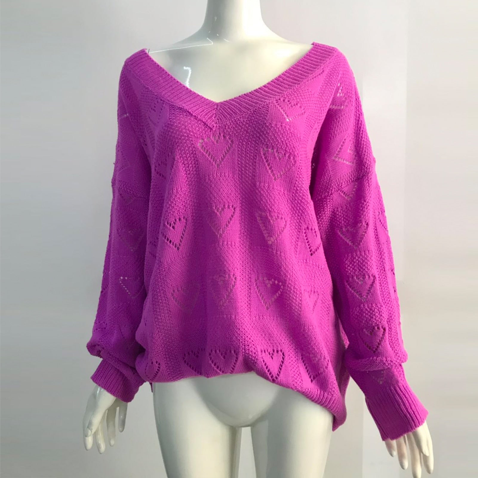 Women Autumn Winter Love Heart Hollow Crochet Sweater Loose: Women Casual Sweaters Autumn Winter Love Heart Hollow Crochet Sweater Loose Knitwear V Neck Loose Sexy Tops