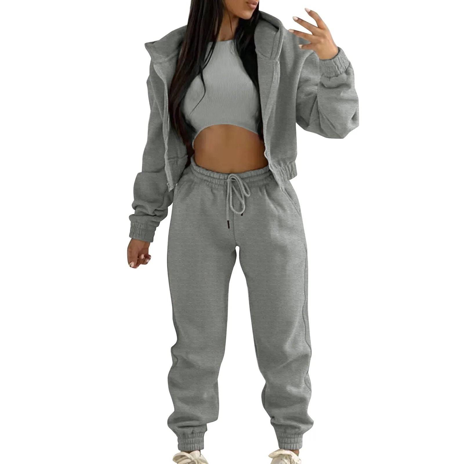 Casual Tracksuit Top Vest Pant Set Solid Color Zipper Sexy Casual Loose Outfits