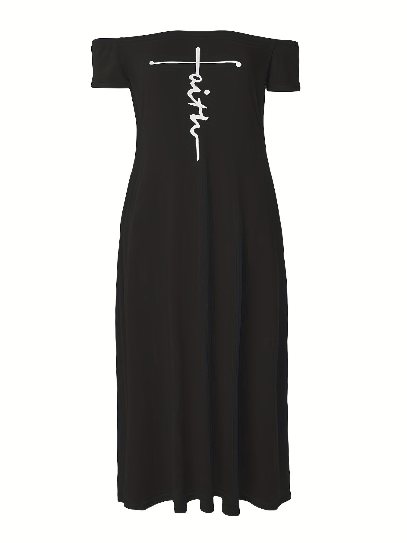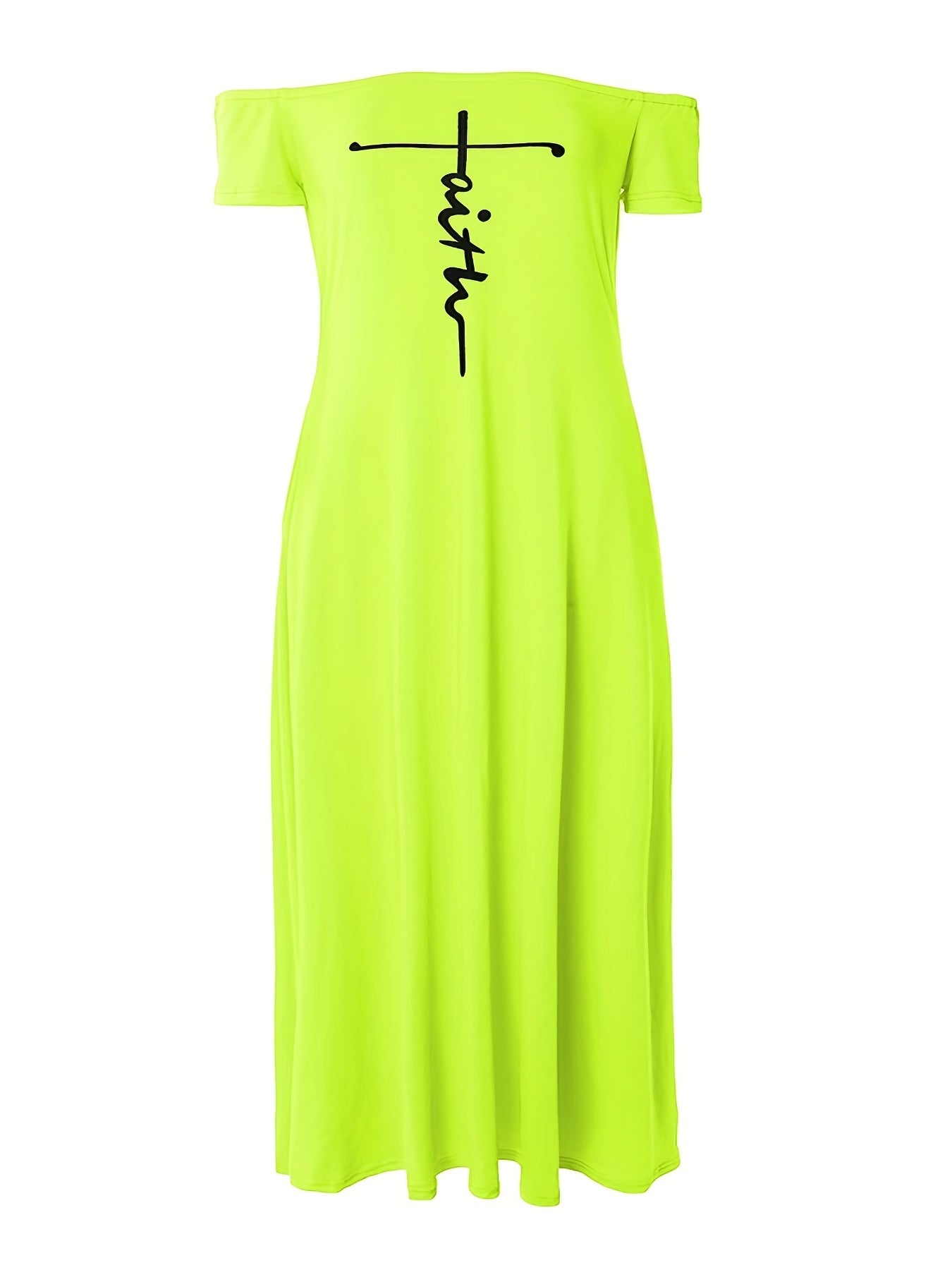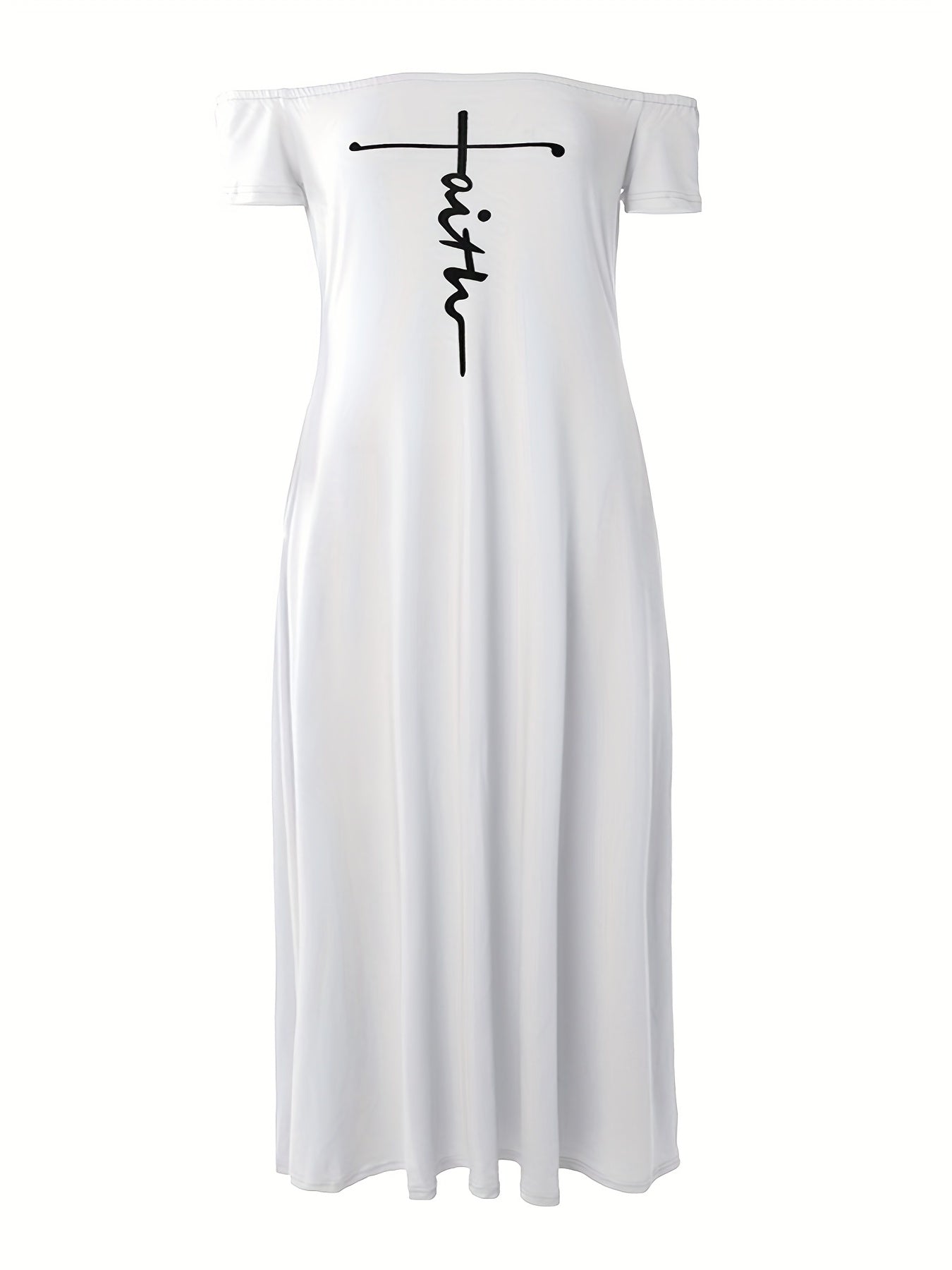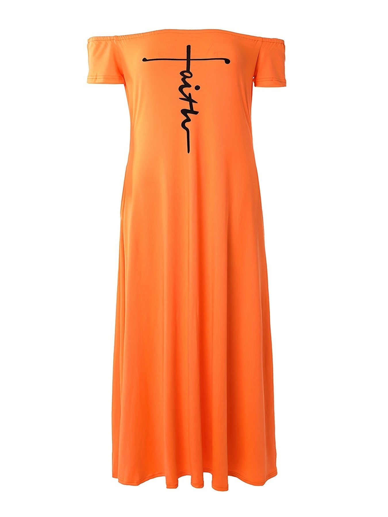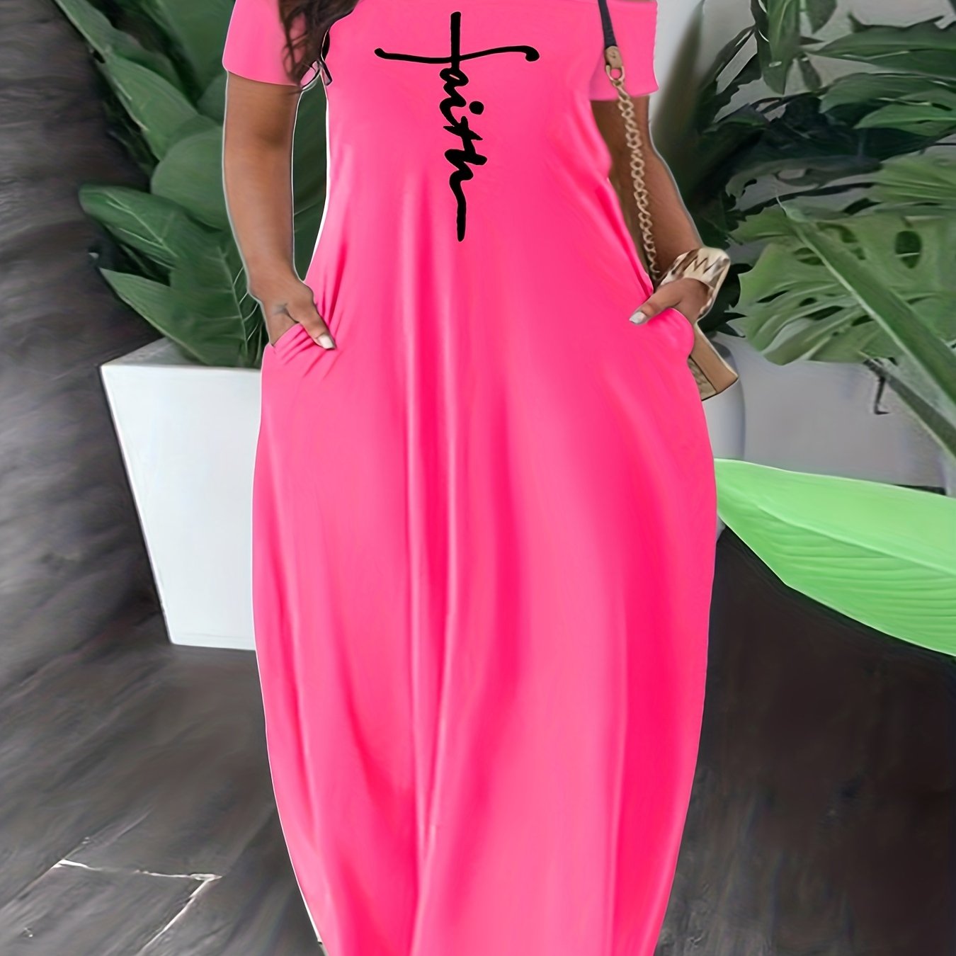 Casual Dress Cross Letter Print Off Shoulder Short Sleeve Maxi Dress With Pockets